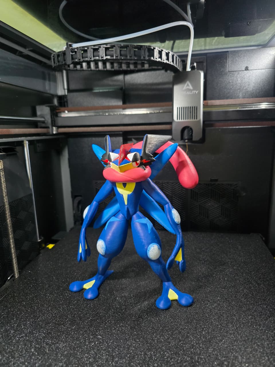 Muñeco coleccionable en 3D Greninja, elaborado en material resistente con detalles de alta calidad. Figura pintada a mano con acabados únicos, ideal para coleccionistas y fans de Pokémon. Tamaño aproximado: 20 cm.